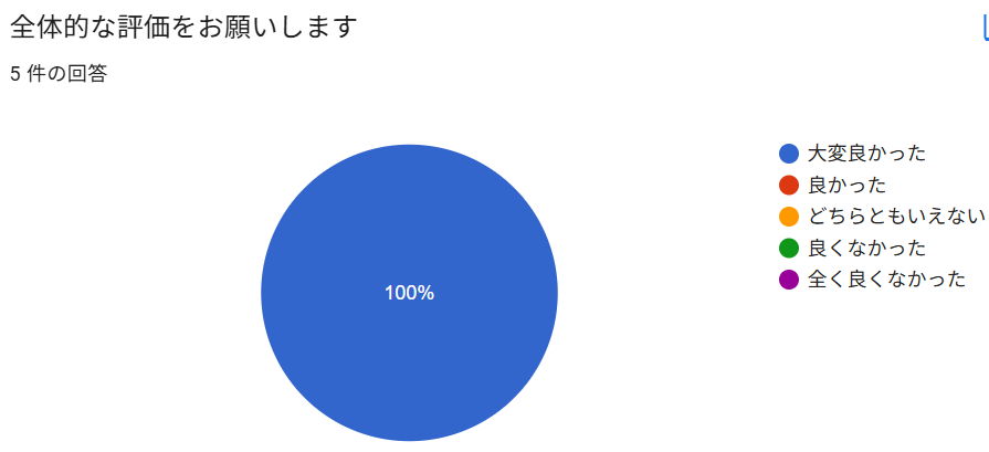 アンケート結果の一部をこちらに記載いたします。YouTube の最大同時視聴者数は66名で、5名の方が回答してくださいました。